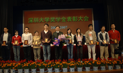 陶士平宣读《关于表彰乐竞平台2006-2007学年度先进班集体和学生先进个人以及社会奖学金获奖者的决定》。在欢乐的进行曲中,江潭瑜、陶士平为校先进班集体代表、先进个人颁奖;朱素兰、罗柱、陈宏略、李晓佳等嘉宾分别为获得南太奖学金、杜邦奖学金、永亨银行奖学金、香港恒生银行奖学金的学生代表颁奖。颁奖仪式结束后,学校奖学金获奖学生代表――法学院2005级法学4班学生刘铃聿、社会奖学金获奖学生代表――生命科学学院2005级生物化学与分子生物学研究生周文明分别发言。