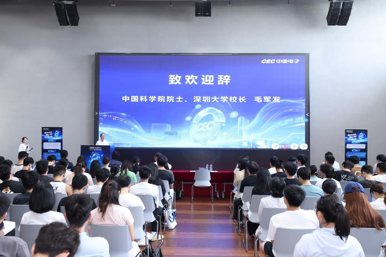 毛军发在致辞中回顾了双方的历史渊源:中国电子与深大都诞生于上世纪80年代,作为改革开放的“同龄人”,都共同肩负着科技创新的使命。他强调,这是中国电子首次在深大举办专场招聘,既是对学校人才培养质量的充分肯定,也标志着双方合作进入新阶段。据悉,目前中国电子全系统内已有深大毕业生300余人。