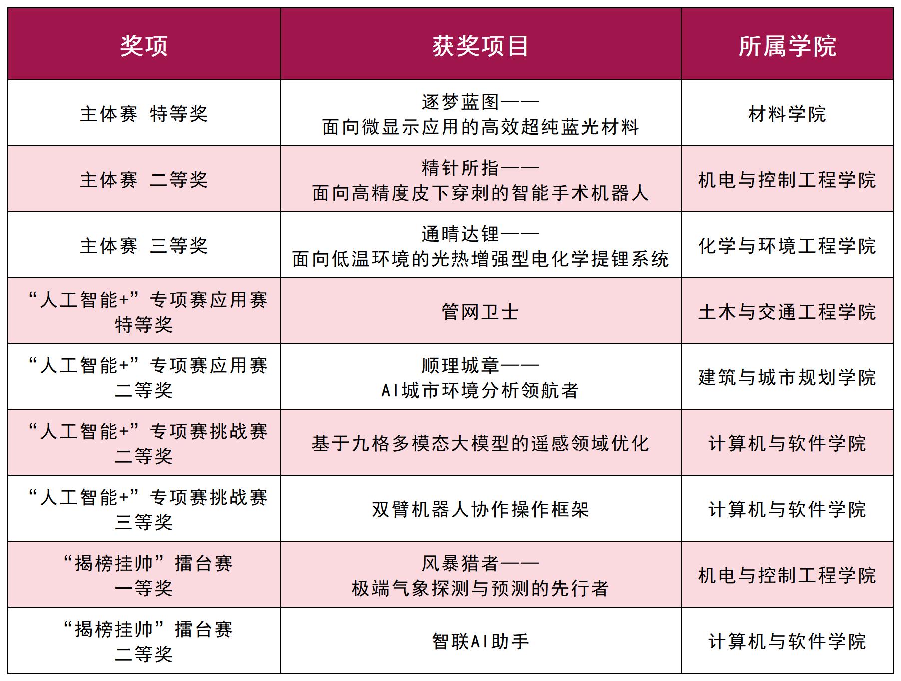 在本届比赛中,深大青年表现优异,刷新乐竞平台获奖数历史最好成绩,共计斩获9个“挑战杯”国赛奖项,其中,主体赛特等奖1项、二等奖1项,三等奖1项;“人工智能+”专项赛应用赛特等奖1项、二等奖1项,“人工智能+”专项赛挑战赛二等奖1项、三等奖1项;“揭榜挂帅”擂台赛一等奖1项、二等奖1项。